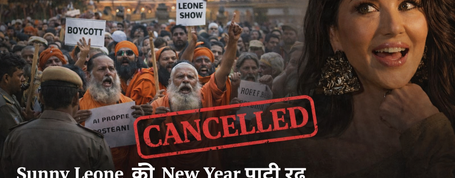 उत्तर प्रदेश के मथुरा में आयोजित होने वाली बॉलीवुड अभिनेत्री Sunny Leone की New Year 2026 पार्टी को लेकर बड़ा विवाद खड़ा हो गया। धार्मिक संगठनों और स्थानीय संत समाज के भारी विरोध के बाद यह कार्यक्रम रद्द कर दिया गया है। इस फैसले के बाद मथुरा में धार्मिक भावनाओं, संस्कृति और प्रशासनिक निर्णयों को लेकर नई बहस छिड़ गई है।