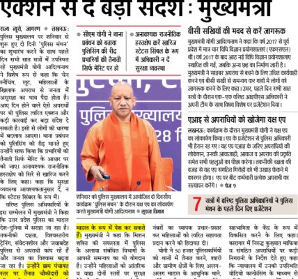 UP Police – लखनऊ स्थित पुलिस मुख्यालय में आयोजित दो दिवसीय वरिष्ठ पुलिस अधिकारियों के सम्मेलन #पुलिस_मंथन-2025 का शुभारंभ उत्तर प्रदेश के मुख्यमंत्री योगी आदित्यनाथ द्वारा किया गया। इस महत्वपूर्ण अवसर पर मुख्यमंत्री ने प्रदेश की कानून-व्यवस्था, पुलिस सुधारों और बीते वर्षों में हासिल की गई उपलब्धियों पर विस्तार से प्रकाश डाला।